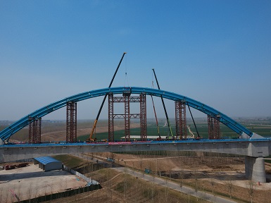 球友会手机版雄商高铁(梁山段)黄河特大桥钢拱肋顺利合龙